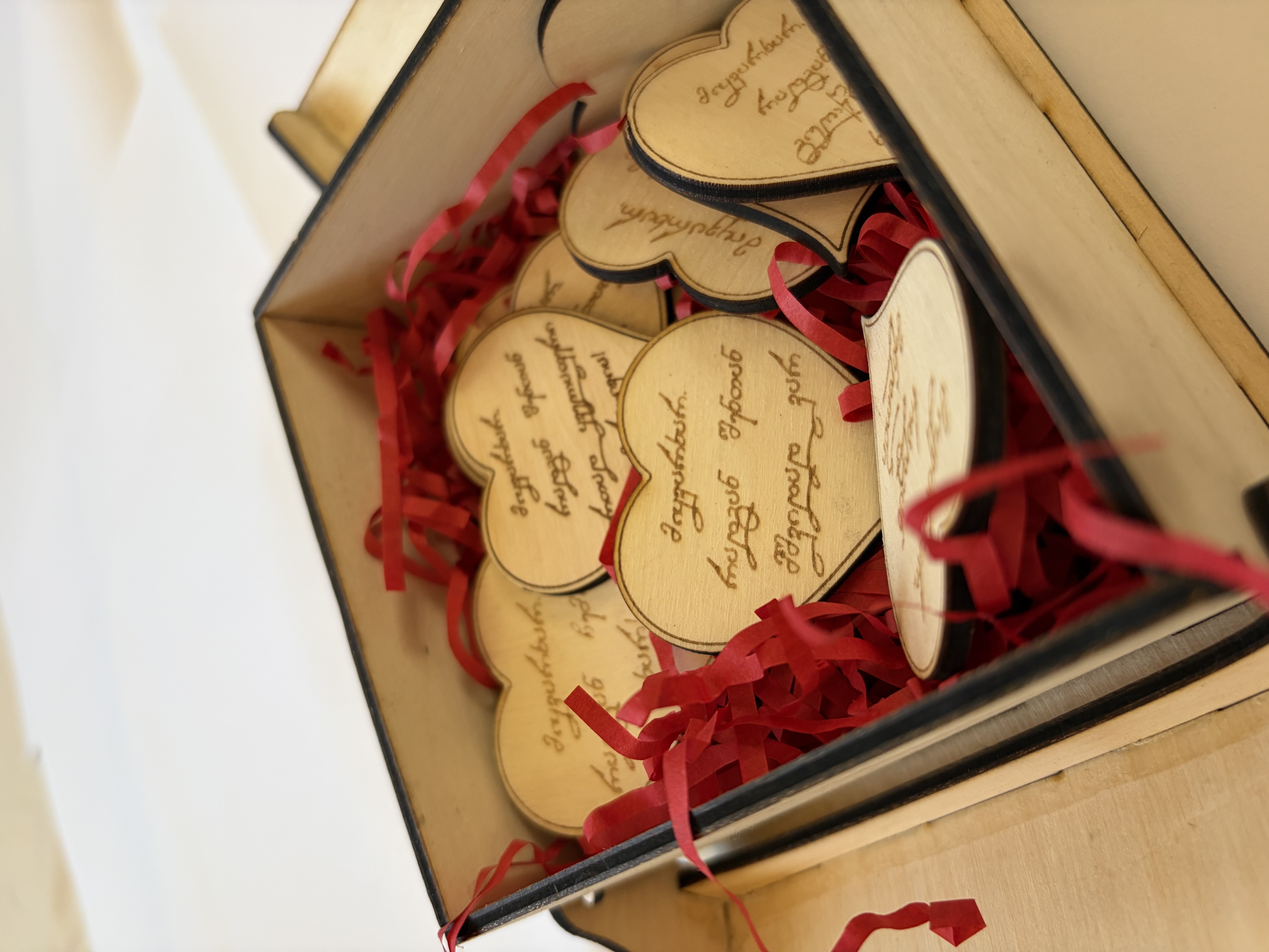 იდეალური საჩუქარია 14 თებერვლისთვის ან უბრალოდ იმისთვის, რომ უთხრა „მიყვარხარ“ განსაკუთრებულად❤️ 🎁 გრავირებული ხის ბოქსი + 10/ 20/ 30+ მიზეზით✨ ტექსტი შესაძლოა იყოს პერსონალური, თქვენი სიტყვებით😊 1. მიყვარხარ, რადგან შენთან მშვიდად ვარ! 2. მიყვარხარ, რადგან შენთან ერთად ყველაფერი მარტივია! 3. მიყვარხარ, რადგან შენთან ბედნიერი ვარ! 4. მიყვარხარ, რადგან განსაკუთრებული ხარ! 5. მიყვარხარ, რადგან ჩემი მხარდამჭერი ხარ! 6. მიყვარხარ, რადგან გულწრფელი ხარ! 7. მიყვარხარ, რადგან ჩემი გესმის! 8.მიყვარხარ, რადგან კეთილი და ყურადღებიანი ხარ! 9. მიყვარხარ, რადგან მენდობი! 10.მიყვარხარ, რადგან ჩემთან ხარ!